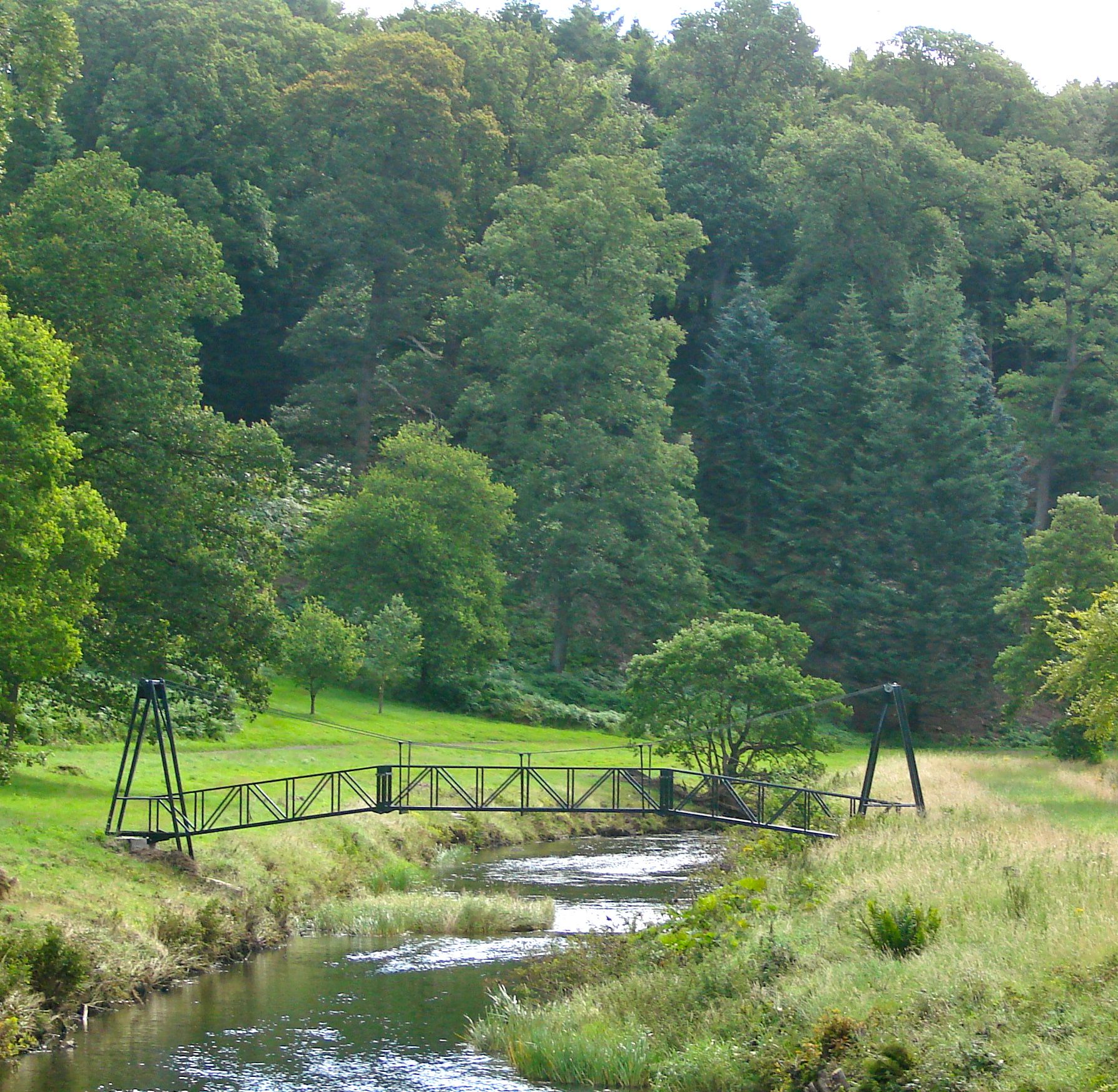 The third bridge is another foot bridge near the ruins of the Hulne Priory which is a suspension bridge probably of 20th century provenance. It too is very original in its construction.